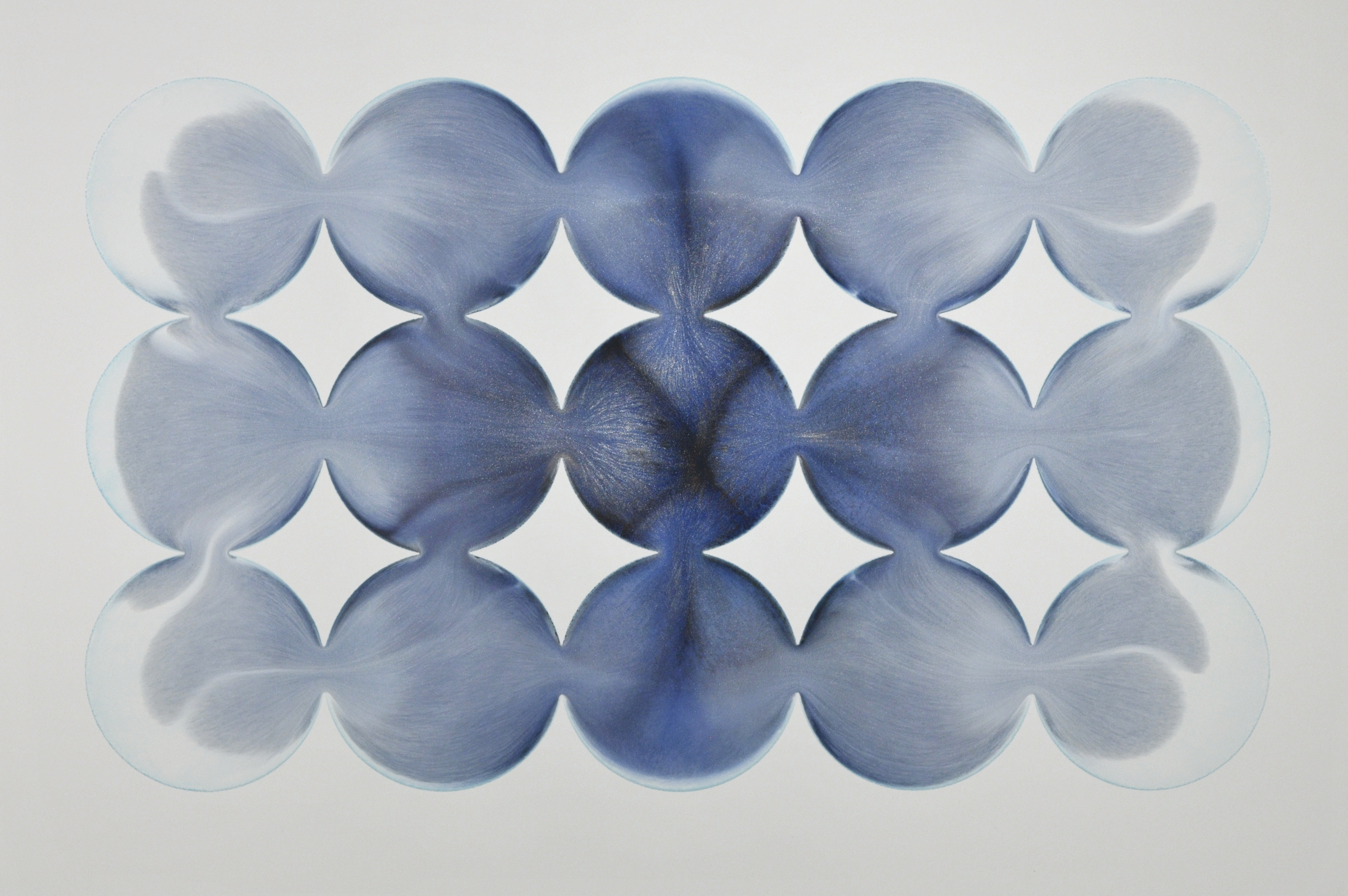 Standing back from the pictorial, reducing the parameters and exploring the fundamental properties of the media allows access to the drama of the interaction of water, paint and paper – which can in some way record and imprint natural processes and forces.