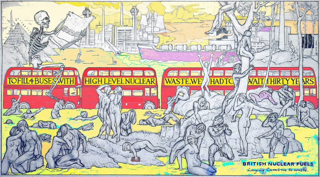 During the process of making the film I learned a great deal about the reality behind BNFL media relations. The satirical image above lampooned a BNFL broadsheet advertisement in which they made the claim that the radioactive legacy at Sellafield was insignificant. By its own admission, it is home to one of the largest inventories of untreated waste, including 140 tonnes of plutonium, the largest stockpile of ‘civil plutonium’ in the world.